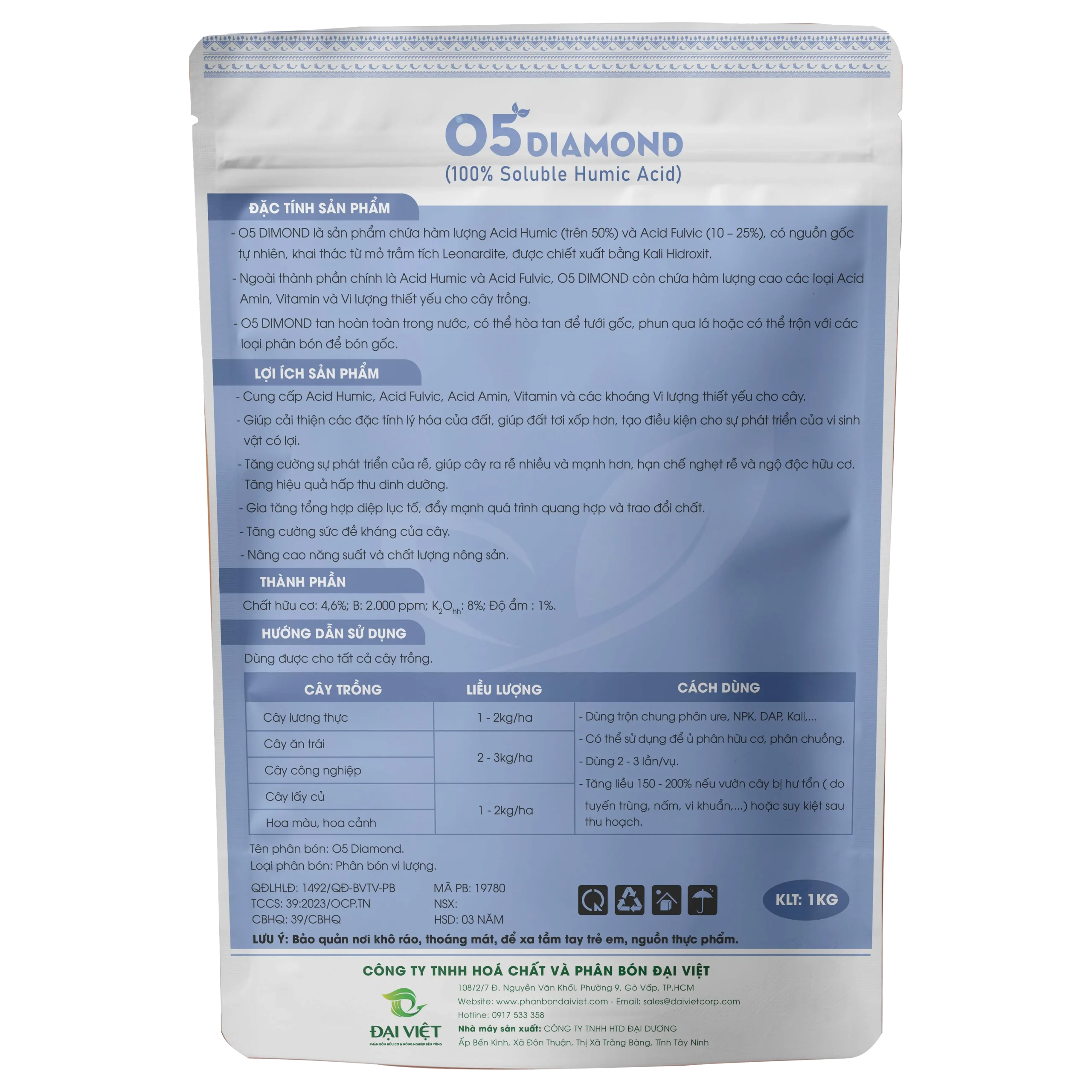 Phân bón Đại Việt trân trọng giới thiệu diện mạo mới của sản phẩm Humic + Vi lượng O5 DIAMOND. Với thiết kế bao bì hiện đại, bắt mắt, sản phẩm vẫn giữ nguyên công thức và chất lượng vượt trội, cam kết mang đến những giá trị tốt nhất cho cây trồng của bà con Nông dân. Phân bón Đại Việt luôn không ngừng cải tiến để mang đến những sản phẩm tốt nhất. Với bao bì mới của O5 DIAMOND, chúng tôi mong muốn mang đến cho bạn trải nghiệm sử dụng sản phẩm chuyên nghiệp và hiệu quả hơn. Hãy cùng Đại Việt khám phá diện mạo mới này và trải nghiệm những hiệu quả vượt trội!