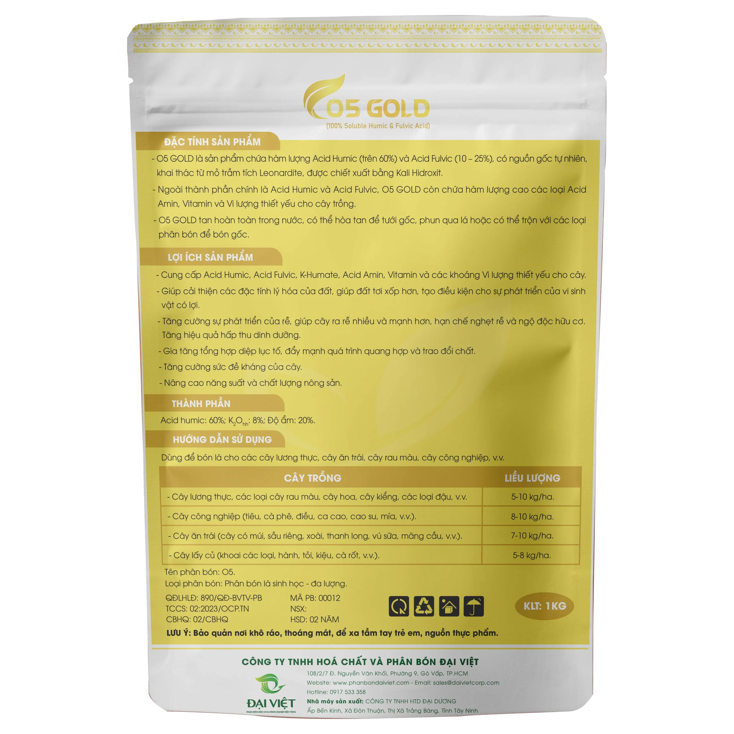 Phân bón Đại Việt trân trọng giới thiệu diện mạo mới của sản phẩm Humic cao cấp O5 GOLD. Với thiết kế bao bì hiện đại, bắt mắt, sản phẩm vẫn giữ nguyên công thức và chất lượng vượt trội, cam kết mang đến những giá trị tốt nhất cho cây trồng của bà con Nông dân. Phân bón Đại Việt luôn không ngừng cải tiến để mang đến những sản phẩm tốt nhất. Với bao bì mới của O5 GOLD, chúng tôi mong muốn mang đến cho bạn trải nghiệm sử dụng sản phẩm chuyên nghiệp và hiệu quả hơn. Hãy cùng Đại Việt khám phá diện mạo mới này và trải nghiệm những hiệu quả vượt trội!